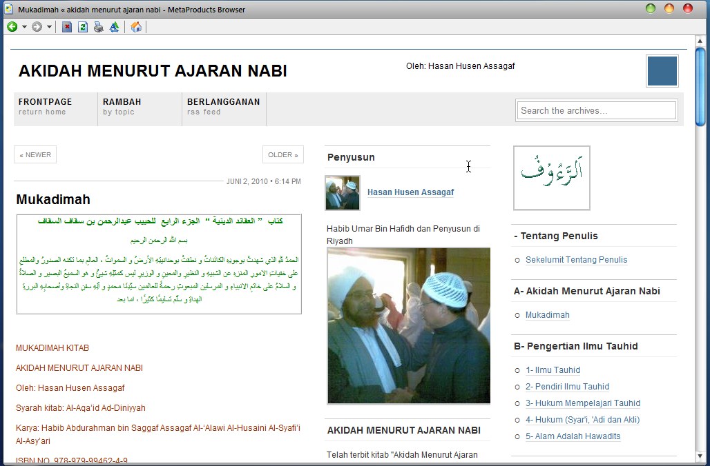 Karya: Habib Abdurahman bin Saggaf Assagaf Al-‘Alawi Al-Husaini Al-Syafi’i Al-Asy’ari